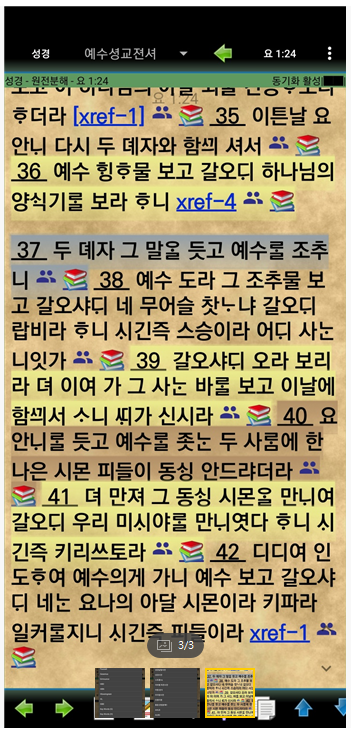 다른 프로그램에 없는 기능이라면 사용자가 직접 소유하고 있는 서적을 스캔하여 성경과 연결할수 있다는 점이다.