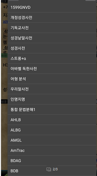 모바일용으로는 mysword가 있다. 무료버전도 가능하나 기부버전하나 구입해 두면 저렴하게 많은 기능을 사용할 수 있다.