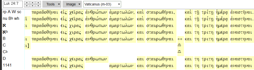 ※ 별도 확인용 보충 자료는 bibleworks10의 신약 사본들과 theword 데이터를 캡쳐함.