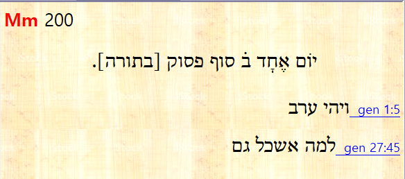 첫째 날 이란 형식 으로 2회 사용, (ס״פ로 줄여서 표현하기도 함.) 한 절의 마지막. [토라=모세오경에서] ![]() |