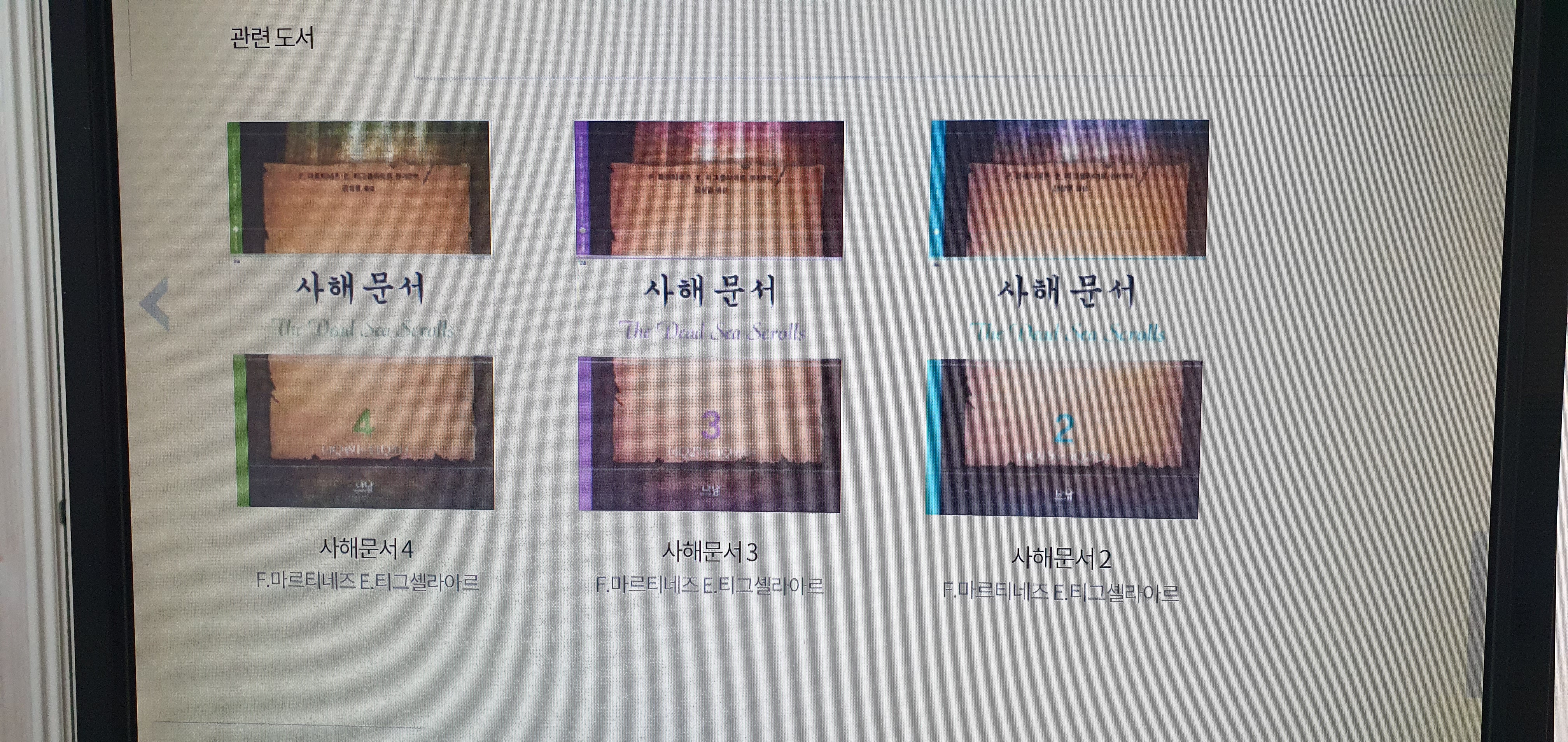 요즘 창세기 원문을 보면서 사해 사본에 관심을 가지고 있다. 2008년에 강성열 목사님이 번역하신 책이 있다는 것을 알게 되어 어제 출판사에 책 재고가 있는지 물어 보았다. 1,4권만 판매가 가능하고 2,3권은 절판이라 중고서점에서나 찾아 보라는 답변만 받았다. 한 세트인데 일부만 구매하기도 에매하고 일단 중고가 나올때 까지 더 생각해 보기로 했다.