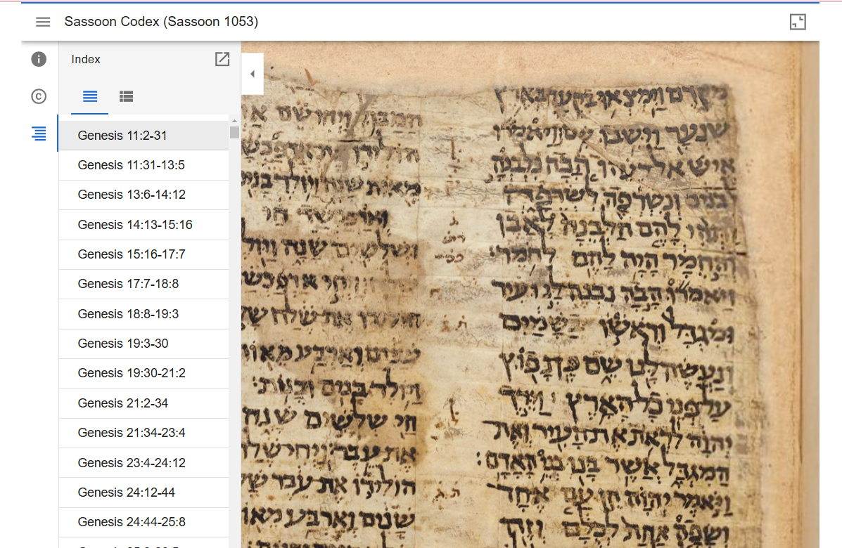 히브리어 성경의 가장 오래되고 가장 완전한 사본은 실제로 Codex Sassoon으로 알려진 책으로, 가장 저명한 현대 소유자인 데이비드 솔로몬 사순 (1880~1942)의 이름을 따서 명명되었습니다. 그는 유대교와 히브리어 사본의 열정적인 수집가였습니다. 9세기 후반 또는 10세기 초반으로 거슬러 올라가는 Codex Sassoon은 히브리어 성경의 모든 24권을 포함하고 있으며, 12장만 누락되어 있으며, 가장 오래된 완전한 히브리어 성경인 레닌그라드 사본 보다 거의 1세기 앞서 있습니다. 2023년 5월 17일, 소더비에서 3,000만~5,000만 달러의 추정 가격으로 경매에 나오면 Codex Sassoon은 경매에서 판매된 역사상 가장 가치 있는 역사적 문서가 될 수 있습니다.